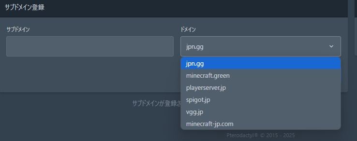 統合版のサーバーのためサブドメインを登録した後に、サーバーの種類をJava版に変更したら、サブドメインの削除もできなくなります。